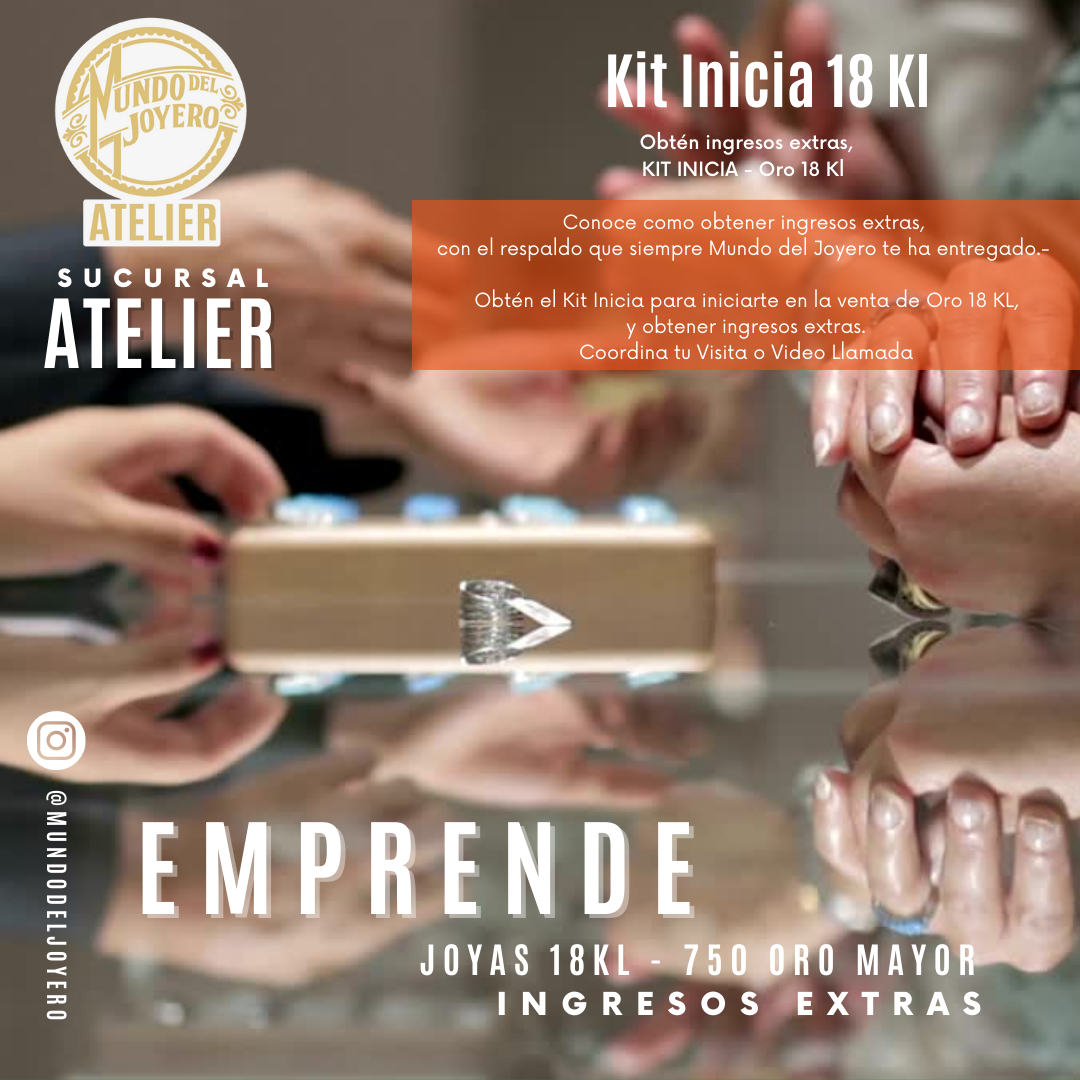 Emprende - Mundo del Joyero: Buscas obtener un ingreso Extra? En Atelier - Mundo del Joyero, asesoramos y capacitamos para que te inicies en la venta de Joyas de 18Kl. Nuestra trayectoria nos permite entregar la garantía, calidad y respaldo para que obtengas un ingreso extra, ofreciéndote Joyas certificadas, de alta rotación, diseños únicos y comercializables.- Encuentra tu Kit inicia en nuestra sección Novedades --> Joyas 18Kl | |